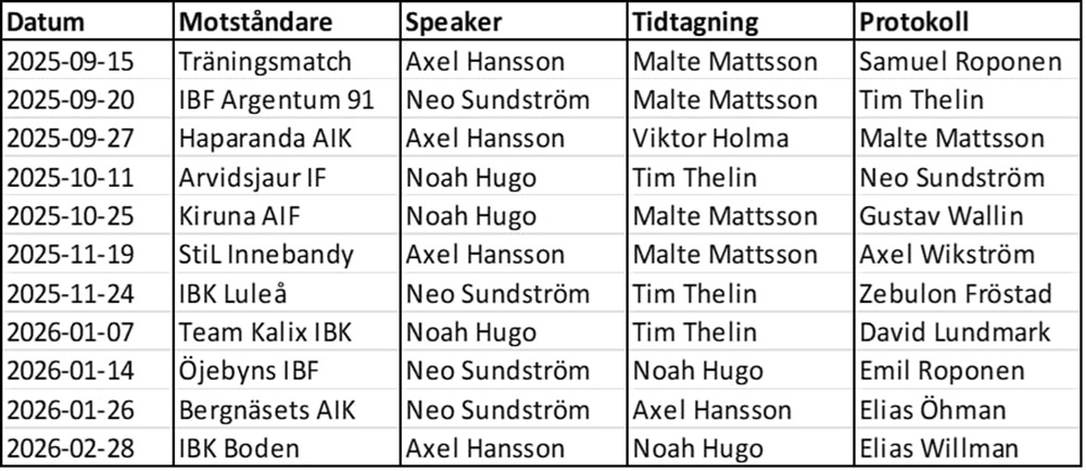 Schema för sekretariat 2025-26