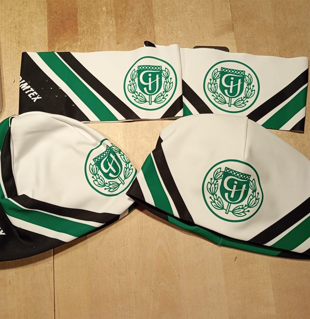 Klubbmössor och pannband till försäljning